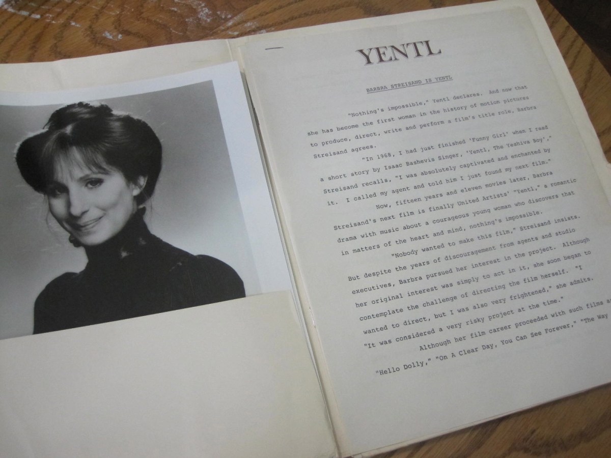 Yentl Press Kit Published February 16, 2014 at 1600 × 1200 in Chapter 12. A Very “Yentl” Christmas ← Previous The ‘Yentl’ press kit! Thank you nice guy who answered the phone! Thank you! Share this:Tweet Email a link to a friend (Opens in new window) Email Print (Opens in new window) Print Share on Reddit (Opens in new window) Reddit Share on TumblrPocketLike Loading...