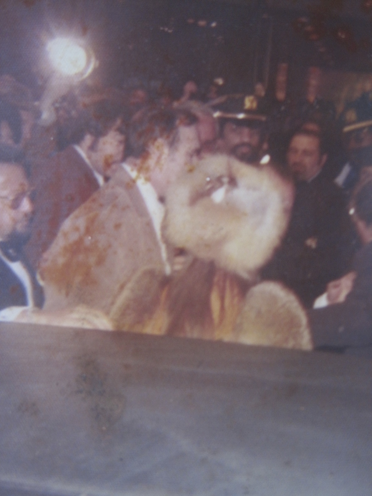 That night convinced me that I don’t like these “fan” things. People were so pushy and rude and mean once it got close to Barbra’s arrival. No wonder she is scared. When her car pulled up I thought we would be crushed to death. We were right up front and everyone from behind just started jumping over us. I remember looking at the limo and seeing what looked like brown velvet curtains over the windows. James Caan got out of the car, the door closed again and stayed shut for a few moments.