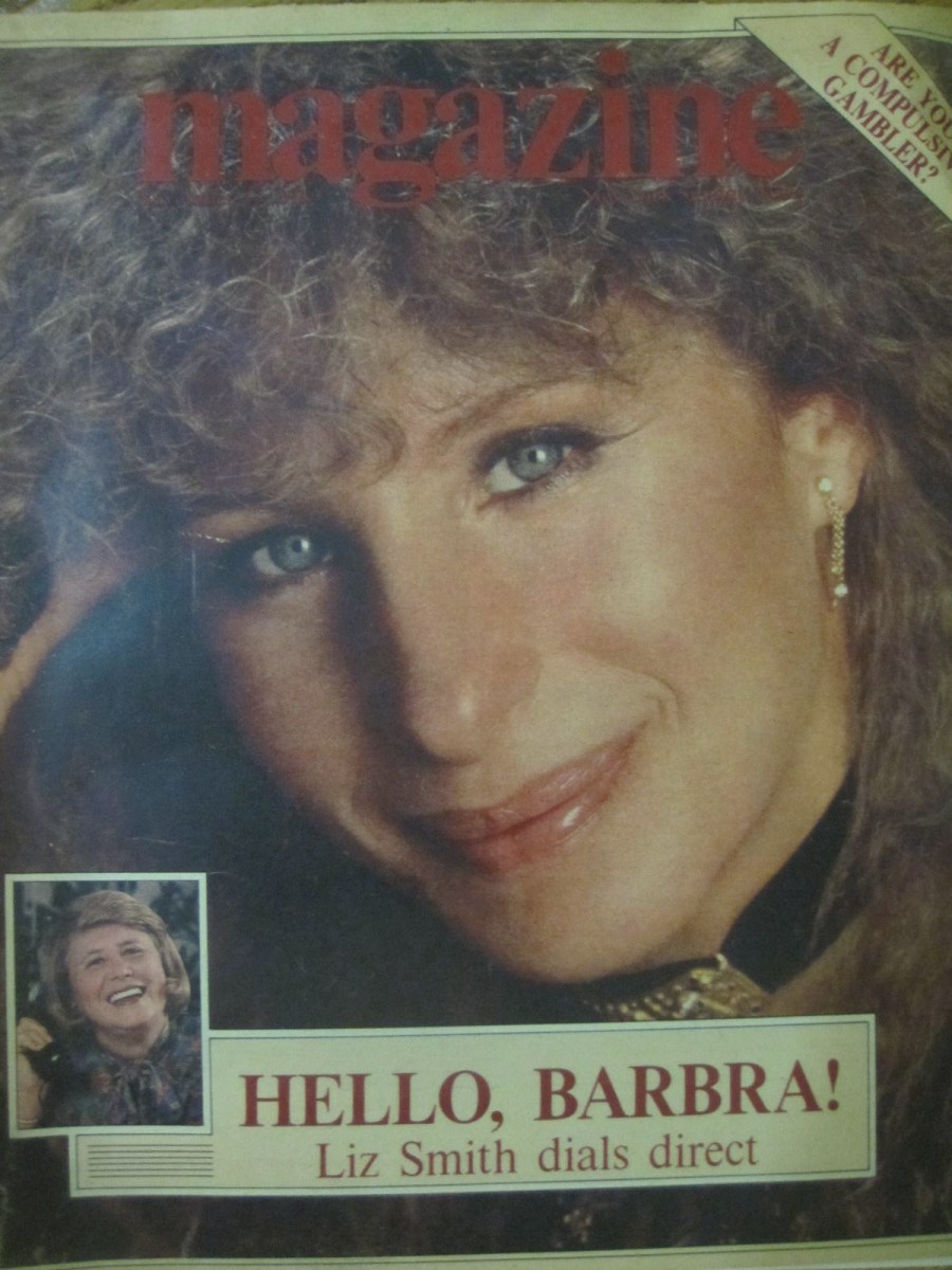 Barbra Streisand Liz Smith Published February 16, 2014 at 1200 × 1600 Barbra takes a call from columnist LIz Smith. The ‘Yentl’ push is well under way. Share this:Tweet Click to email a link to a friend (Opens in new window) Email Click to print (Opens in new window) Print Click to share on Reddit (Opens in new window) Reddit Share on TumblrPocketLike Loading...